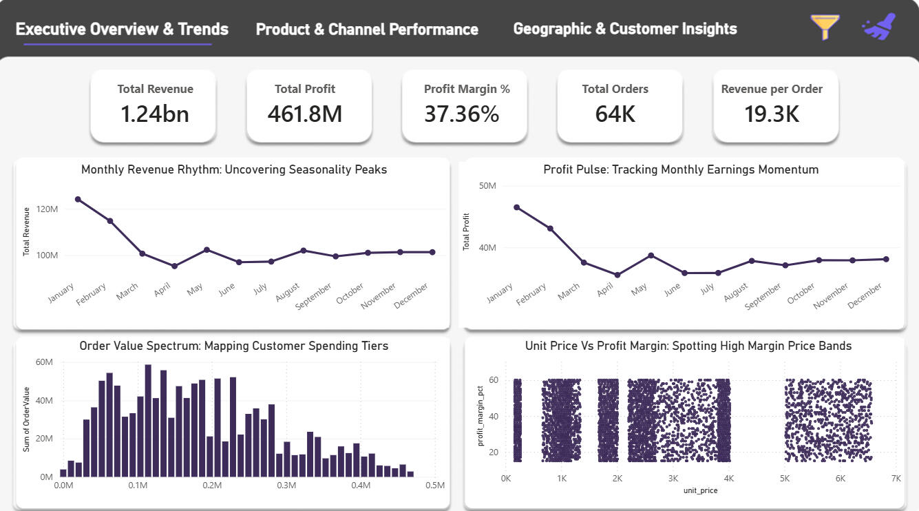 - Monthly Revenue & Profit Trend – Time-series visualization with clear seasonality