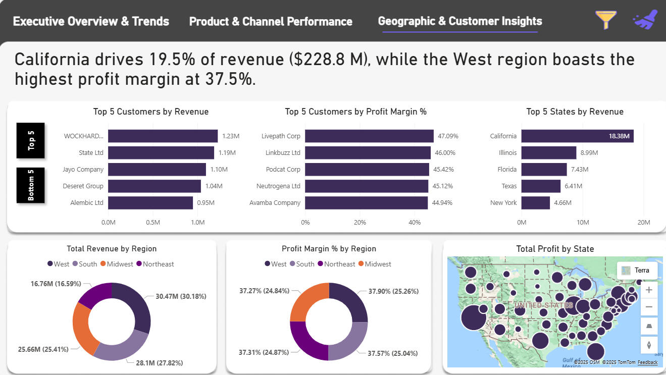 - Trend Analysis – Channel-specific performance over timePage 3: Geographic & Customer Insights